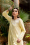 This beautiful lavender-hued article features embroidery and lace accents on the neckline with embroidered borders made with a beautiful lilac and blush pink color combo embroidery, paired with textured azar pants.