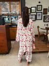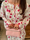 This printed 2pc blends comfort with elegance, featuring a short shirt and shalwar. Beautiful scallop detailing on sleeves and daman, along with a classic neckline, complete the look.