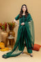Embroidered front, plain back, cut work embroidered straight full sleeves, cut work embroidered front daman, plain straight pants.