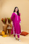 Straight shirt with fringe details on neckline, sleeves, and daman, straight full sleeves, plain back and palazzo pants with fringe details.