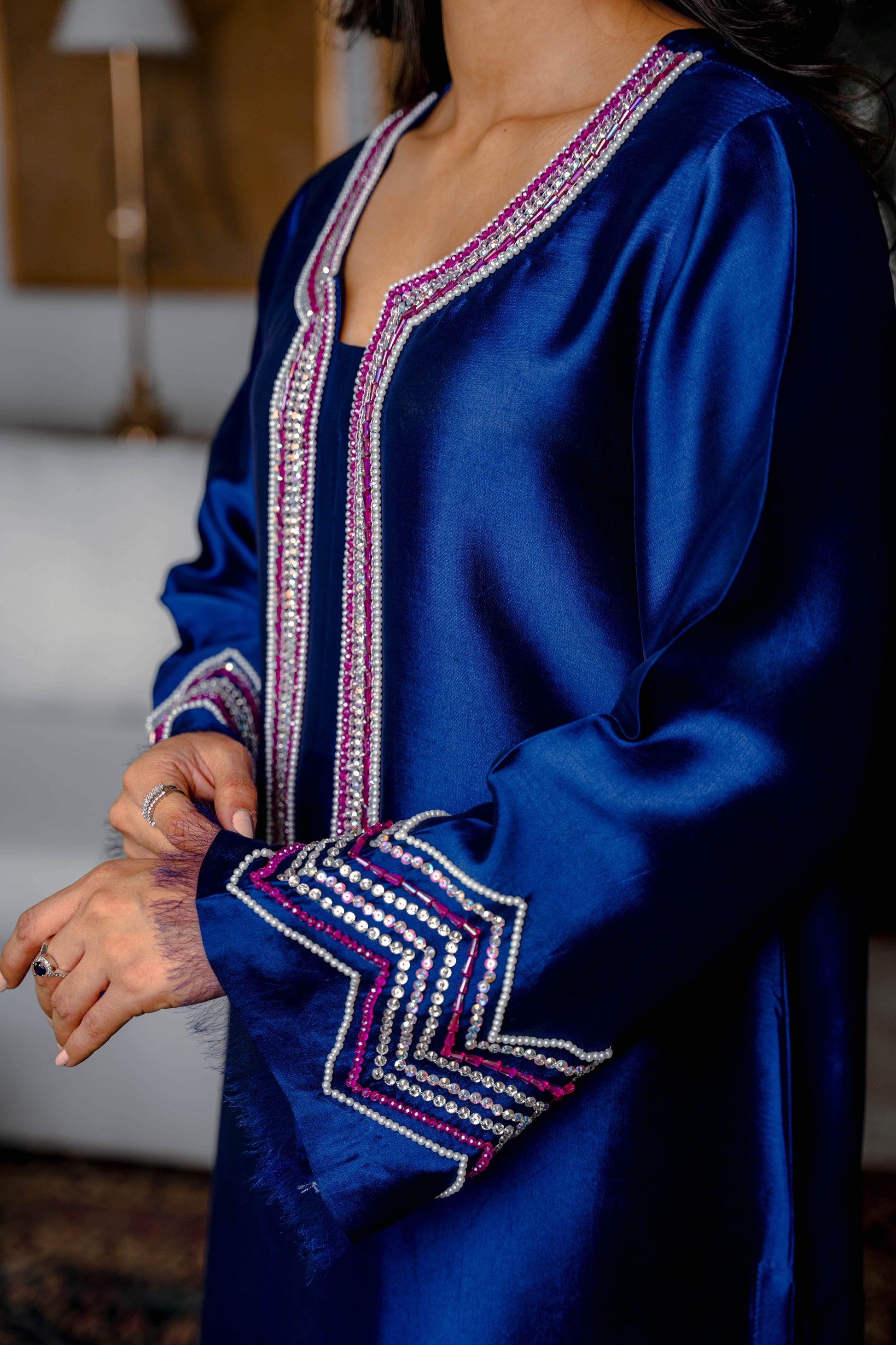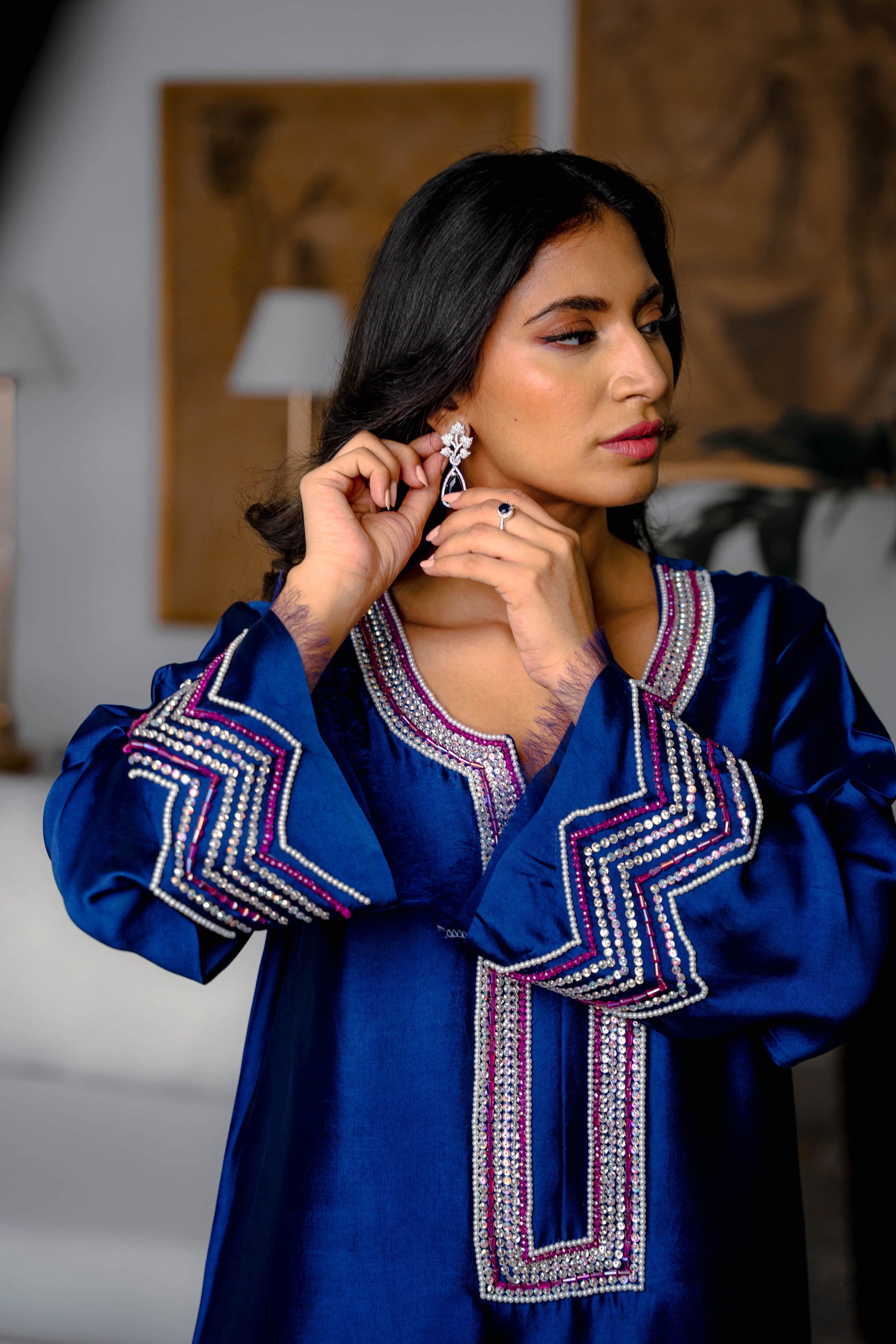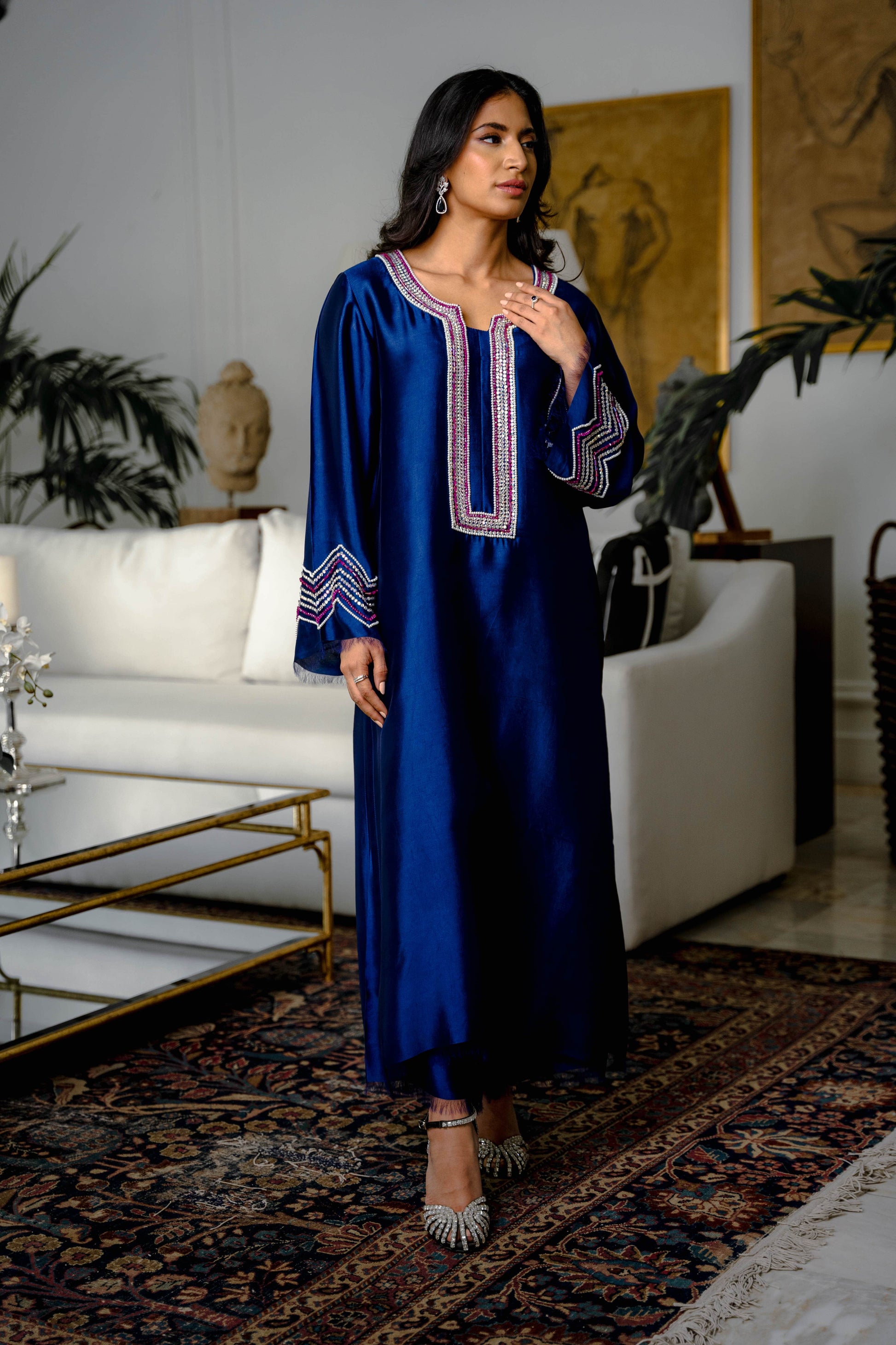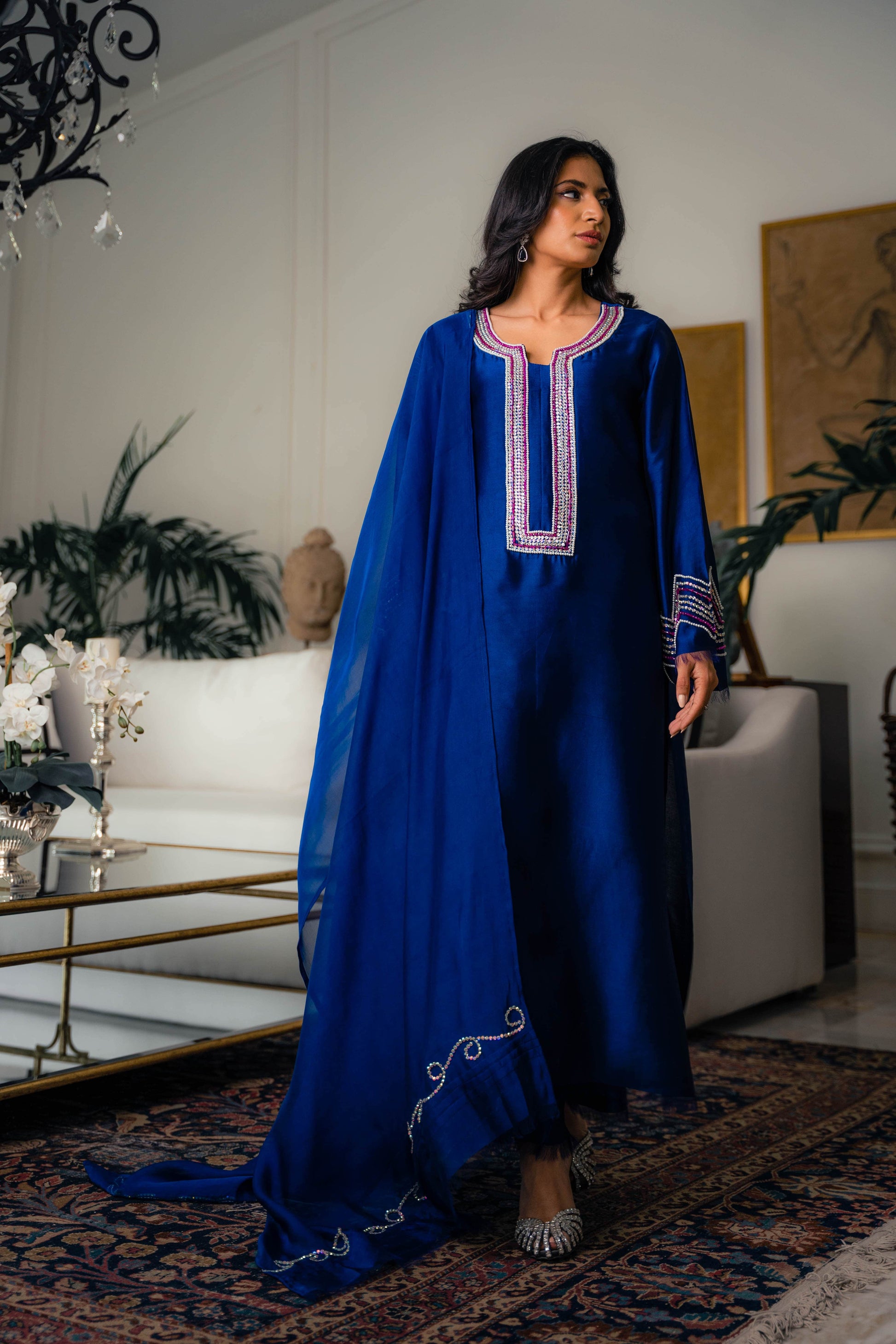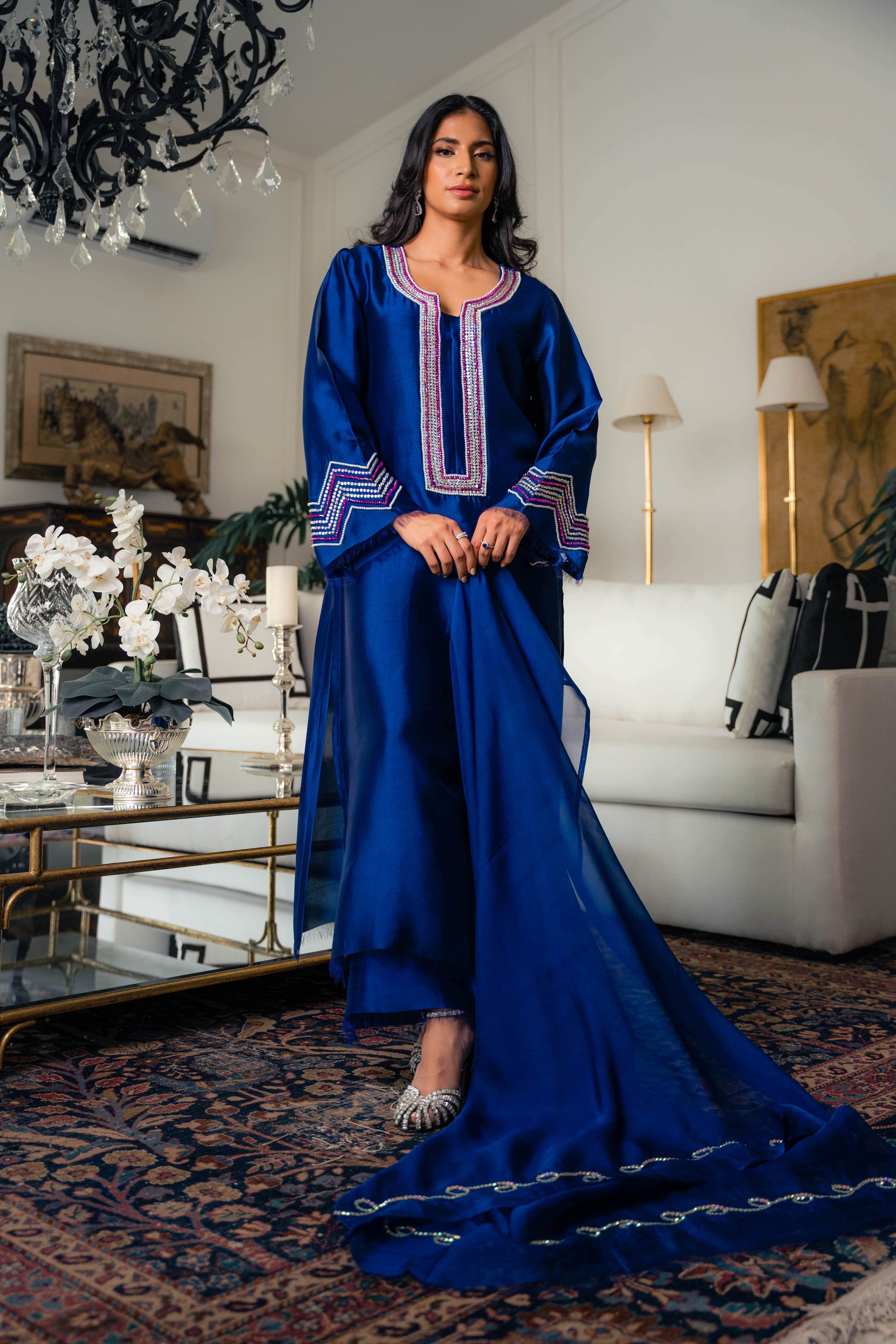 Sparkling Swarovski crystals and pearls embellishments, thread detailing, and an embroidered organza dupatta make this 3-piece dress beautiful. The shirt and pant made from luxurious pure sheesha silk, complete the sophisticated style.